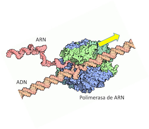 En poques paraules i simplificant, la síntesi de proteïnes a partir del codi genètic guardat a l’ADN es fa en dues etapes. En una primera fase, uns enzims anomenats polimerases d’ARN llegeixen trossos d’ADN i generen l’ARN, l’àcid ribonucleic. L’ARN (molècula d’hèlix simple que conté la transcripció d’un segment d’ADN) serà l’encarregat de la síntesi de proteïnes, en una segona fase. La meravella de tot plegat és que les polimerases d’ARN han de cercar el tros d’ADN que cal transcriure i tot seguit anar-lo copiant sense destruir ni alterar la informació genètica de l’ADN. Ho fan molt fàcilment gràcies a l’estructura unidimensional de l’ADN: les polimerases d’ARN es mouen al llarg de les vies de l’hèlix de l’ADN de la mateixa manera que un tren viatja damunt les seves vies. Ho podeu veure a la imatge del final d’aquest article i en aquest vídeo. Si l’ADN fos bidimensional o tridimensional, seria molt fàcil perdre’s. En canvi, les vies de l’ADN porten les polimerases d’ARN al seu objectiu sense possibilitats d’error. Un camí pot ser tan llarg com vulgueu, però si no té trencalls no ens podem perdre. Això és el que contínuament està passant al nucli de les nostres cèl·lules. Però no penseu pas que polimerases d’ARN es mouen a gran velocitat al llarg de l’ADN. Processen (i avancen) uns 15 codis d’ADN per segon, la qual cosa equival a la velocitat de creixement d’un cabell humà. Aquesta és la velocitat basal del creixement i de la síntesi de proteïnes a tots els éssers vius. De fet, és encara més lenta perquè les polimerases d’ARN incorporen un sorprenent control de qualitat. De tant en tant (en mitjana, un cop cada 1000 codis genètics) s’adonen que han comés un error de transcripció. En aquest cas s’aturen, tornen enrere uns cinc o sis codis d’ADN, rectifiquen i corregeixen la transcripció. Tot seguit tornen a avançar per les vies helicoïdals de l’ADN, com si res no hagués passat. No és realment sorprenent?